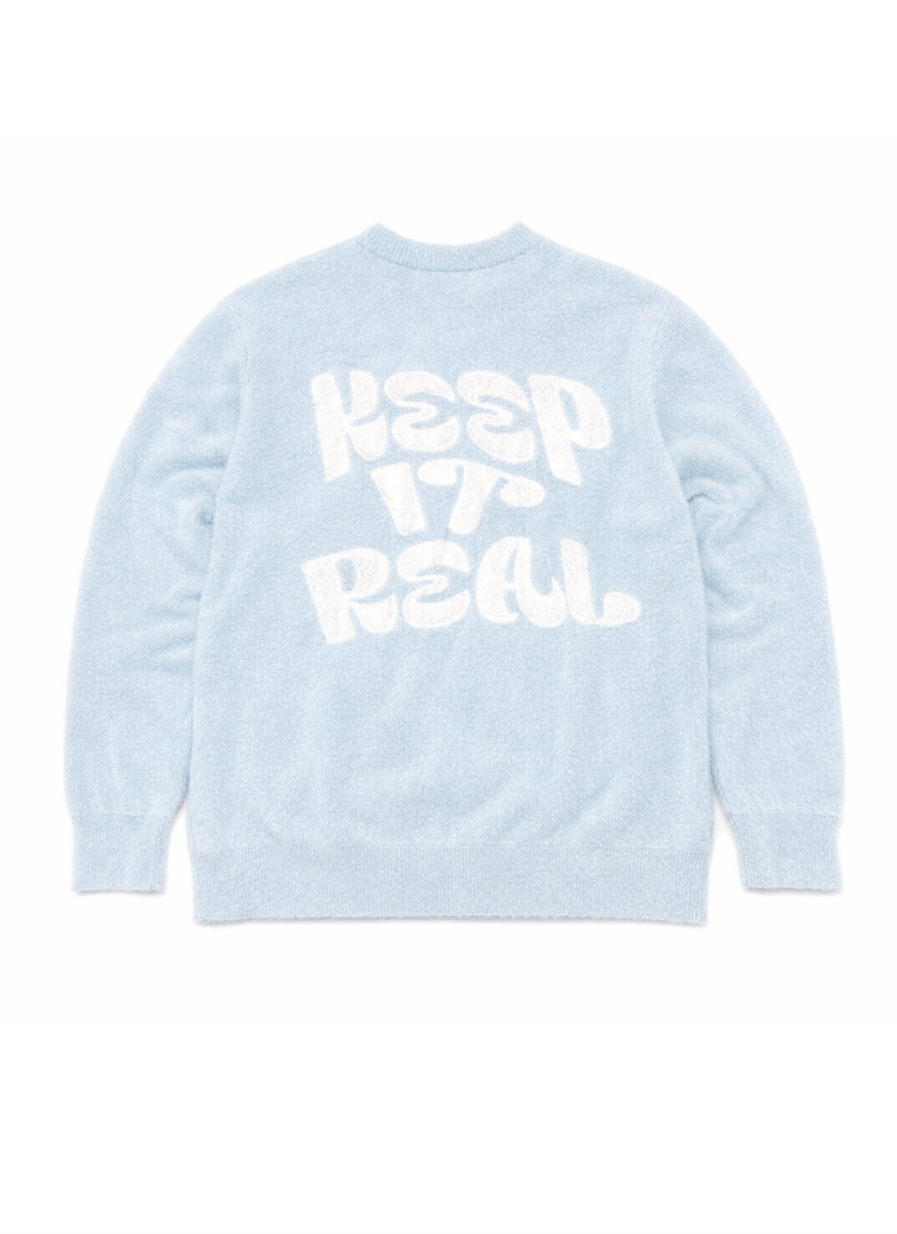 This ultra-soft mohair sweater combines cozy warmth with bold character. Featuring a subtle front detail and the signature “KEEP IT REAL” statement across the back, it delivers effortless style with a premium feel. Finished with ribbed trims and a relaxed fit, it’s perfect for everyday wear during winter, with an elevated edge.
